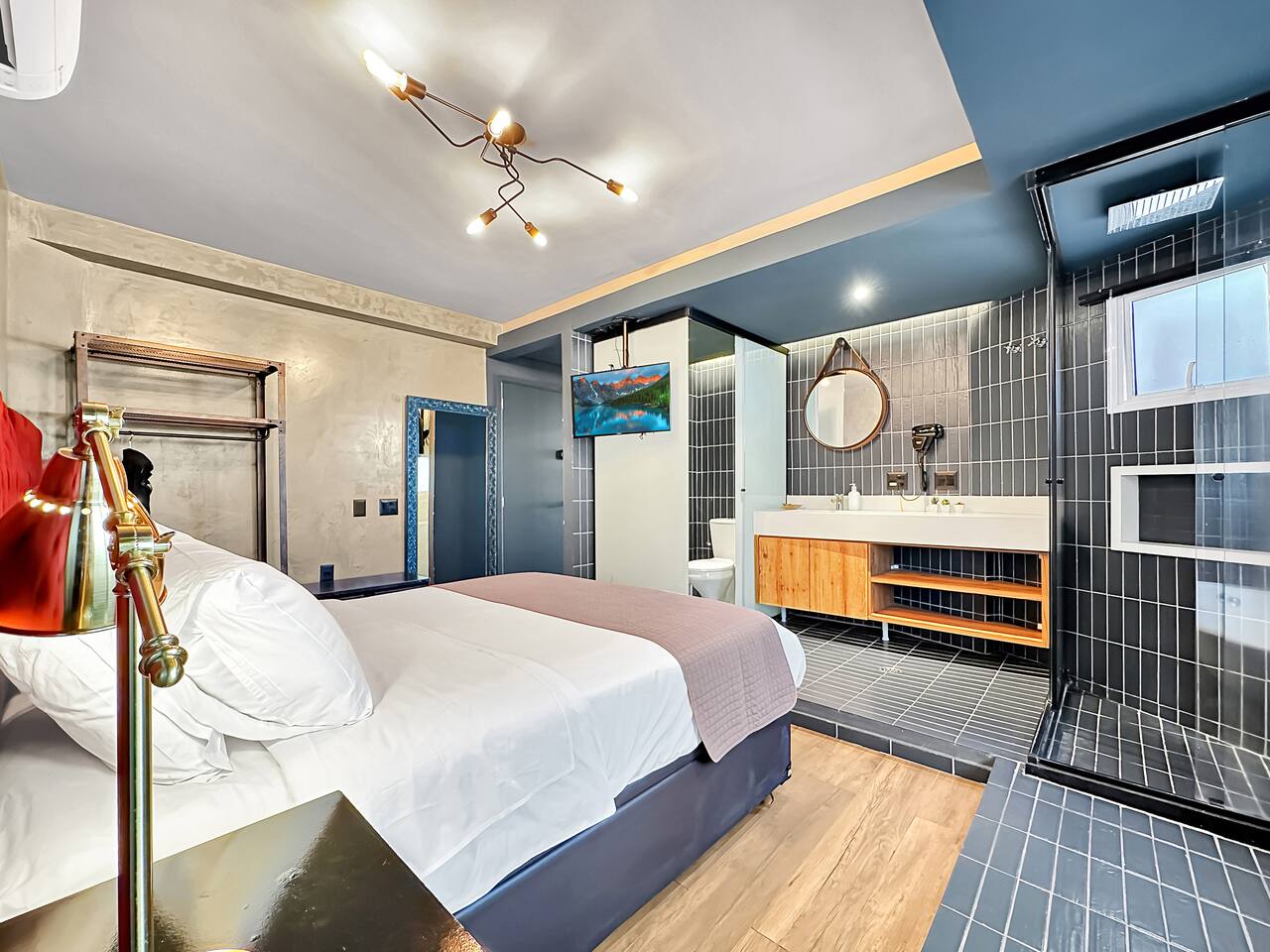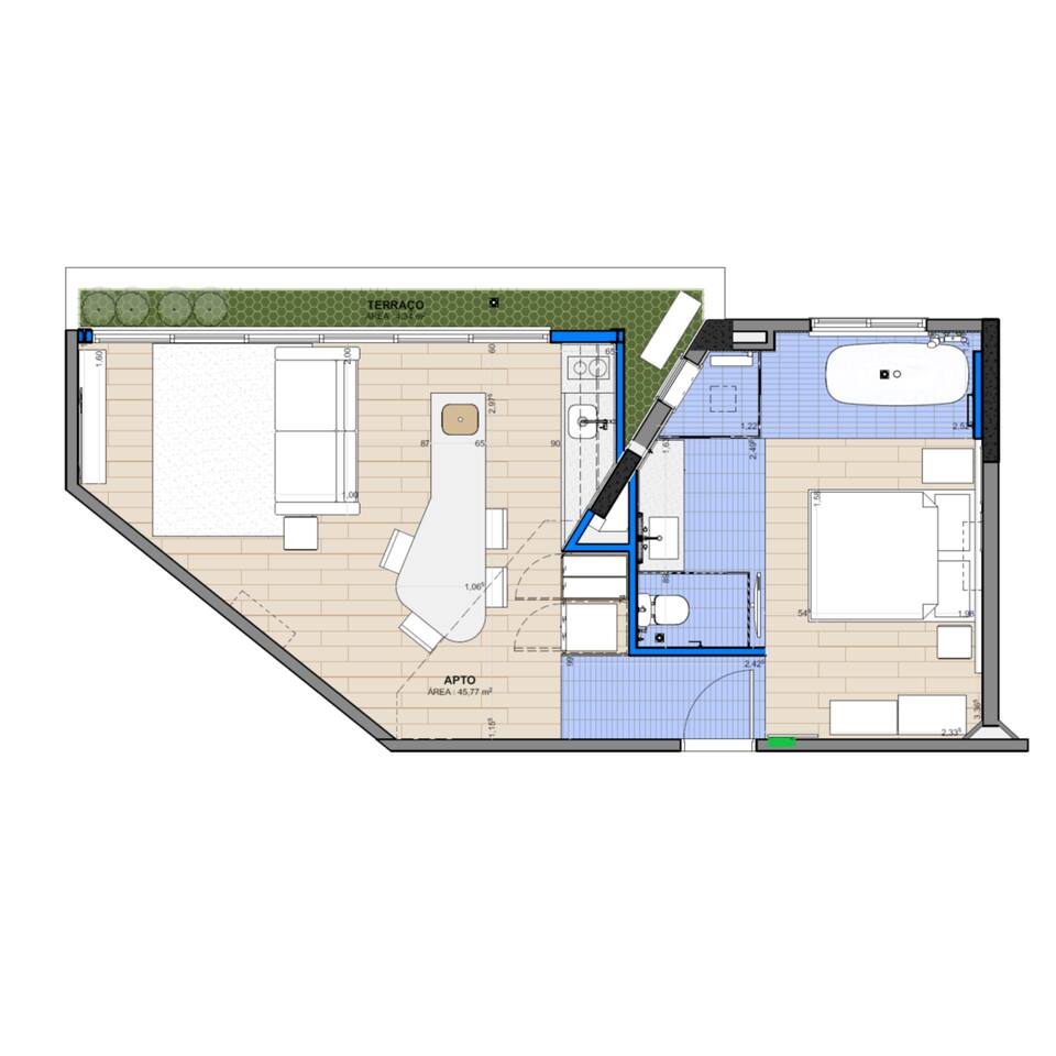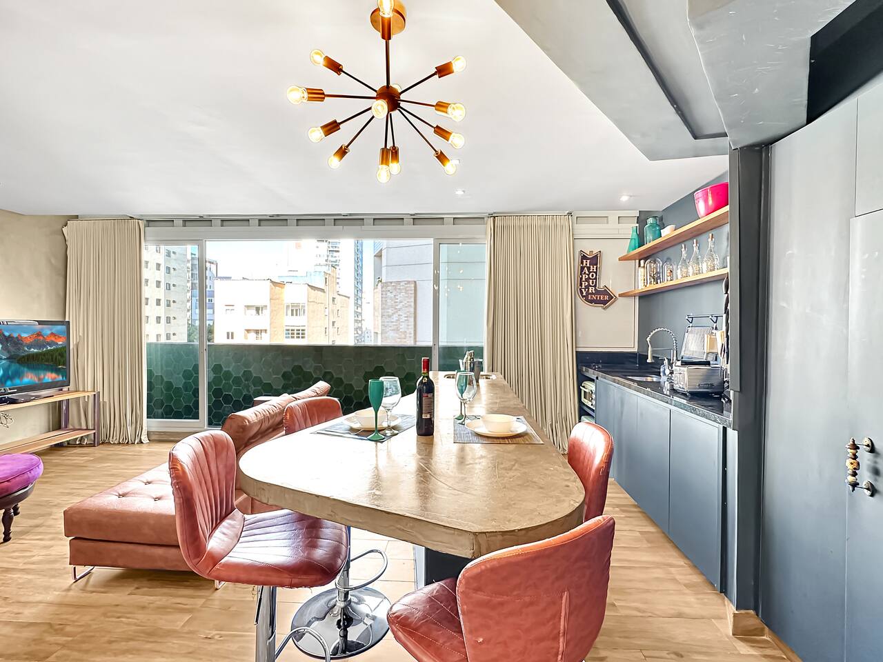Located in a modern and luxurious condominium, we offer a comfortable and convenient stay for our guests. Upon entering the apartment, you will be greeted by a cozy living room decorated with stylish furniture and a flat-screen Smart TV, perfect for relaxing after a long day exploring the city. The living room connects to a private balcony where you can enjoy a cup of coffee in the morning or take in the sunset in the evening. The kitchen is fully equipped with all the appliances and utensils needed to prepare your favorite meals. You will find a stove, oven, refrigerator, microwave, coffee maker, toaster and kitchen utensils. The master bedroom features a comfortable bed, soft linens and cozy pillows to ensure a good night's sleep. Additionally, there is a Smart TV and air conditioning. The bathroom is a true refuge, with an elegant bathtub to relax and recharge your batteries. Soft towels and toiletries are provided for guests' convenience. The apartment also has air conditioning in all rooms, ensuring thermal comfort in all seasons.