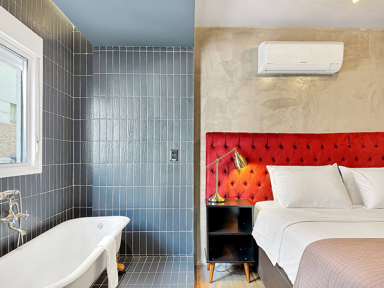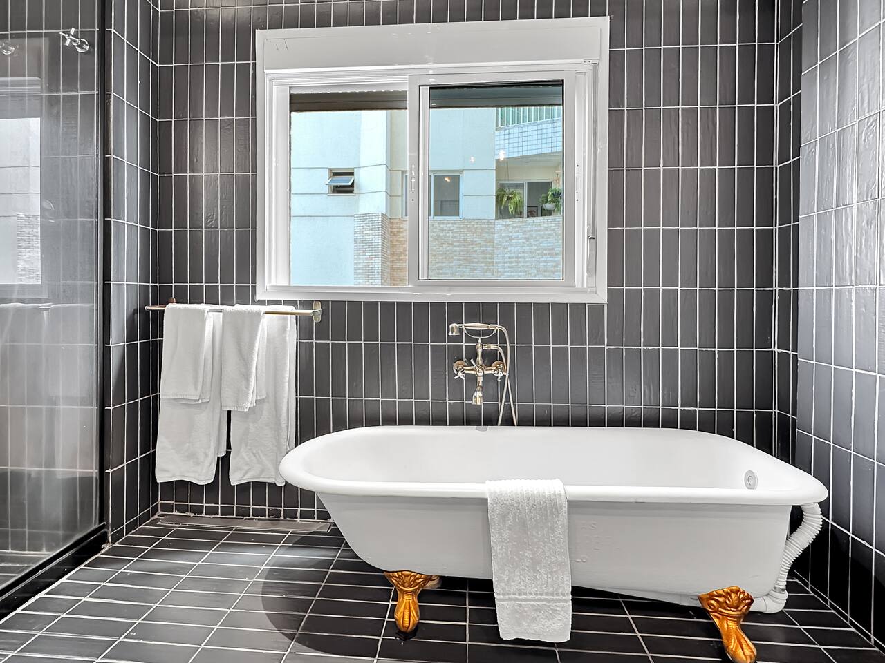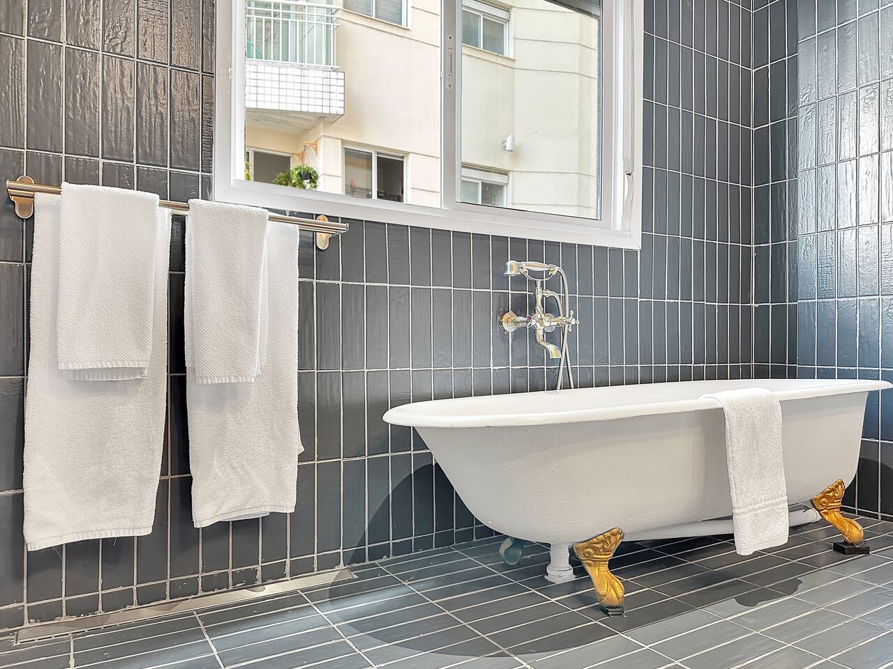 The building has a swimming pool, sauna, gym on the ground floor. Guests even with short reservations can use them too. Remembering that the apartment has a Victorian bathtub.